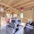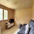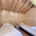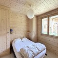 This charming 110m² individual chalet can comfortably accommodate 6-8 guests, featuring five bedrooms and ample living space. The chalet includes a master bedroom with a double bed, a cozy office with a convertible sofa, and three other bedrooms, including two with double beds and one with two single beds. It is pet-free, ensuring a peaceful environment for all guests, and features modern amenities such as plenty of storage, wardrobes, and a flat-screen TV for relaxation.