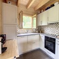 The chalet is well-equipped with a spacious kitchen that includes a ceramic hob, oven, dishwasher, and fridge/freezer, along with a raclette and fondue set for memorable meals. A cozy living area provides a comfortable place to unwind, and the two bathrooms feature modern facilities, including a walk-in shower and a bathtub. Additional amenities include a laundry room with a washing machine and dryer, a ski room, and three parking spaces right outside the chalet. Please note, bed linens and towels are not provided.
