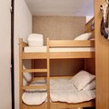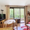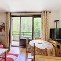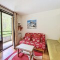 This cozy studio apartment, ideal for 4 people, offers a comfortable and functional space for your stay. It features a sleeping area with a bunk bed and a double bed, along with a sofa bed in the living room, ensuring ample sleeping arrangements for guests. The apartment also includes a bathroom with a bathtub and sink, as well as a separate toilet. Pets are allowed, making it a pet-friendly option for animal lovers. The studio is on the first floor (without elevator) and offers a pleasant west-facing exposure with views of the forest.