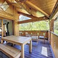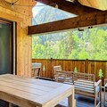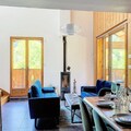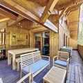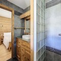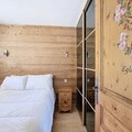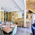 The apartment features a fully equipped kitchen with everything you need to prepare meals, including a microwave, fridge/freezer, induction hob, traditional oven, dishwasher, and a washing machine. The open-plan living and dining area is ideal for spending quality time together, and the large outdoor terrace is perfect for al fresco dining, equipped with a plancha and garden furniture. A garage and uncovered parking space are available for guests, offering convenient storage for ski equipment or bicycles.