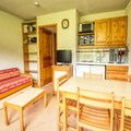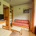 This cozy apartment is ideally located at the foot of the slopes, offering a comfortable stay for up to 4 guests. It includes a bedroom with a 140x190 cm bed, a sleeping area with a bunk bed (please note, the high bed is unsuitable for children under 6), and a pull-out sofa in the living room. The apartment is pet-free and non-smoking, providing a clean and quiet space for relaxation. Additional amenities include a vacuum cleaner, drying rack, and a ski locker for your convenience. Please note that internet access is not available in the apartment.