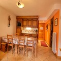 Inside, the apartment offers a fully equipped kitchen with a refrigerator, ceramic hob, combined oven, dishwasher, coffee maker, and kettle. The living room includes a TV and a corner kitchen. A bathroom with a bathtub and a ski locker add convenience. Enjoy the views and fresh air from the southeast-facing balcony.