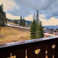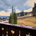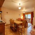 The apartment features a fully equipped kitchen with modern appliances, including a fridge/freezer, oven, microwave, dishwasher, and coffee makers. The bathroom includes a washer-dryer for added convenience, and there is a separate toilet. Step out onto the east-facing balcony, where you can relax with a view of the resort and mountains. Wi-Fi is included, and for those with a car, a garage space is available, though parking can be challenging due to the tight maneuvers required.