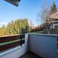 The apartment features a fully equipped kitchen, including a refrigerator, dishwasher, ceramic hobs, oven, microwave, and electric coffee maker, providing all the essentials for preparing meals. The bathroom includes a bathtub, and there is a separate toilet for added comfort. An east-facing balcony with garden furniture and a parasol is the perfect spot to relax and enjoy meals outdoors after a day on the slopes.