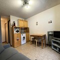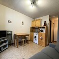 This cozy studio-cabin in the Chalets du Praz residence is an ideal retreat for a mountain getaway. Sleeping up to 4 guests, it offers a cabin with 75x190 bunk beds (not suitable for children under 6) and a living area with a 160x190 convertible sofa. The apartment is equipped with mattress pads, duvets, and pillows to ensure comfort. Pets are not allowed, and the property is non-smoking. A €300 deposit is required. Wi-Fi is available, though the agency is not responsible for connection issues.