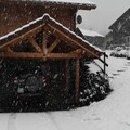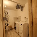 The fully equipped kitchen includes an oven, microwave, dishwasher, ceramic hob, Nespresso machine, kettle, and toaster. A laundry room with a washing machine and dryer adds convenience. The chalet also offers a ski locker with heated racks and a carport for parking, ensuring a comfortable stay year-round.