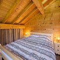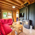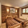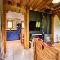 This renovated chalet offers a cozy stay for up to eight guests with four bedrooms, including two with a 160 cm bed and two with a 90 cm bed. It is pet-friendly with an additional fee and features two bathrooms, one with a toilet, and an extra toilet for convenience. The living room has two sofas, a TV, and Wi-Fi. After a day of outdoor activities, unwind in the private jacuzzi, perfect for four people.