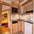 The apartment features a fully equipped kitchen with modern appliances, including a fridge, dishwasher, induction hob, combi oven, electric coffee maker, and toaster. For added convenience, there is also a hand blender, crockery, and kitchenware. With all the necessary amenities, this apartment ensures a comfortable and enjoyable stay.