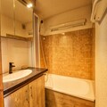 This duplex apartment comfortably accommodates up to 6 guests and offers a cozy bedroom, a mezzanine, and a living room with a sofa bed. The apartment is located on the 3rd floor, without an elevator, and features a bathroom with a bathtub, separate toilet, and plenty of storage space. Pets are not allowed, ensuring a peaceful environment for all guests.