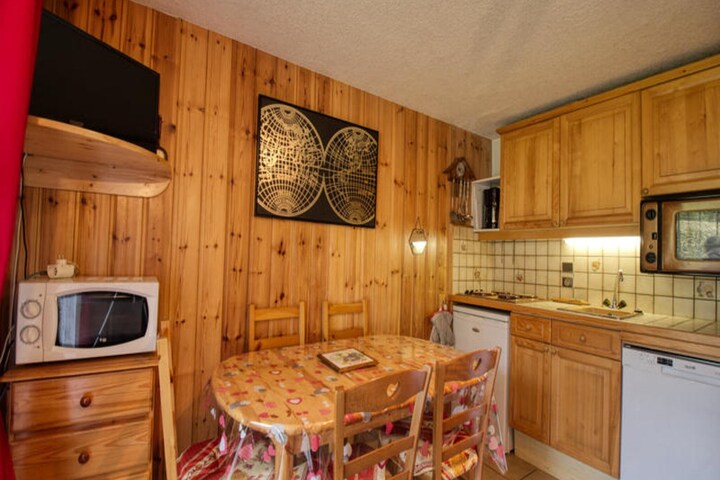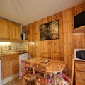 This cozy studio, located on the third floor, offers breathtaking south-facing views of the slopes from its private balcony. Accommodating up to four guests, it features a comfortable 160 cm sofa bed and two bunk beds (suitable for children). With internet access included, this space is ideal for relaxing after a day of adventures. Please note that pets are not permitted, and departure cleaning is required unless arranged for an additional fee. In winter, rentals of five days or more include sheets and towels, while in summer, these are optional.
