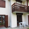 The apartment includes an entrance with a sleeping area, a bathroom with a bathtub and non-separate toilet, a bedroom opening onto a small east-facing terrace with mountain views and garden furniture, and a living area with a television, DVD player, and Wii game console (no games provided). The fully equipped kitchen includes a refrigerator, dishwasher, mini-oven, microwave, electric coffee maker, Nespresso coffee maker, electric kettle, toaster, pressure cooker, crockery, and kitchen utensils. Bedding (mattress pads, pillows, and duvets) is provided. A ski locker is available on level -1, and a vacuum cleaner is provided in the apartment. There is no internet access. Heating is provided. A €300 deposit is required.