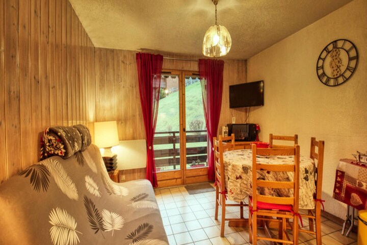 This charming apartment, located on the 1st floor of a renovated building in the heart of Morillon village, is perfect for 4 guests, with the possibility of accommodating 6 with an additional sofa bed in the living room. It features a mountain nook with fold-down bunk beds, a cozy bedroom with a 140x190 cm bed, and a living room with a TV and convertible sofa. The east-facing balcony offers beautiful views of the surrounding area. Please note that pets are not allowed, and the apartment is non-smoking. There is also no internet access provided.