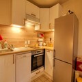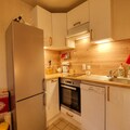 The apartment includes a fully equipped kitchen with a fridge/freezer, ceramic hob, oven, dishwasher, microwave, and both an electric filter coffee maker and a Nespresso pod coffee maker. It also features essential appliances such as a toaster, kettle, raclette machine, and fondue machine. For convenience, a ski locker is available, and basic amenities such as a vacuum cleaner are provided to ensure a comfortable stay.