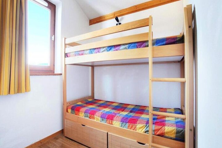 Located 100m from the center of Morillon resort, this studio cabin is perfect for a comfortable stay, accommodating up to 4 people. The living room is furnished with a trundle bed for 2, while the cabin area offers 2 bunk beds. Pets are allowed for an additional fee, and bed linens and bathroom towels are provided, with additional changes available for a fee. Final cleaning is included, though kitchen cleaning and dishes are excluded. A deposit is required upon arrival.