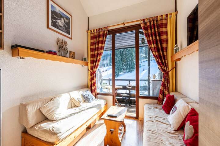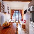 This cozy 38m² apartment in the Grand Morillon residence in Morillon Les Esserts is perfect for up to 6 people, making it ideal for families or groups of friends. Located just 30 meters from the ski slopes, the apartment offers a comfortable living area with two sofas and a TV, as well as a balcony with outdoor seating to enjoy the mountain air. The fully equipped kitchen includes a refrigerator, microwave, dishwasher, coffee maker, and utensils, perfect for preparing meals together.