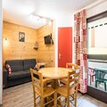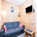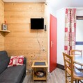 Inside, the apartment is thoughtfully laid out: a snug living room with a sofa bed, a comfortable bedroom with a double bed, and a bathroom with a bathtub and separate toilet. The open kitchen is fully equipped with everything from a dishwasher and microwave to a raclette machine and fondue set—ideal for cozy dinners after a day on the slopes. For little ones, a cot and high chair are provided, and there’s also a ski locker to keep your gear safe. The residence offers seasonal perks like an outdoor swimming pool in summer, plus convenient outdoor parking (subject to availability).