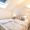Elevator, open kitchen(electric kettle, toaster, coffee machine, oven, microwave, dishwasher, fridge, freezer, dishes and cutlery), Living/diningroom(TV, dining table, seating area), bedroom(double bed), bedroom(single bed, single bed), bedroom(single bed, single bed), bathroom(bath tub, washbasin, toilet), balcony