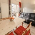 This cozy apartment in Morillon offers a clever and functional retreat for winter sports enthusiasts and nature lovers alike. Located on the third floor, the space is expertly designed for a family or group of four, maximizing every inch to provide a comfortable mountain base. The open-plan living and dining area serves as a welcoming hub, featuring a television for relaxing after a day on the slopes and a dining table where you can enjoy local Alpine flavors.
