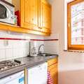 Inside, guests will find a fully equipped kitchen with a refrigerator, microwave, dishwasher, coffee machine, and all the cookware needed for home-style meals. The living space includes a TV and electric heating for cozy evenings, while the private balcony with outdoor furniture offers a serene spot to unwind.