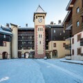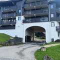 The apartment features a private balcony with scenic slope views, electric heating for year-round comfort, and a TV for winding down after a day outdoors. The building includes an elevator for easy access, and open-air parking is available in the adjoining lot.