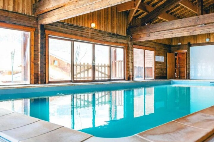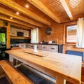 Inside, the open-plan kitchen is fully equipped with a refrigerator, oven, microwave, dishwasher, and all essential utensils. A coffee machine, toaster, and kettle add homely touches, while the sauna and communal heated pool offer relaxation after a day outdoors. With covered parking, a hair dryer, and iron included, this chalet ensures a stress-free and memorable mountain getaway.