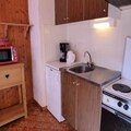 Inside, the studio is thoughtfully designed to maximize comfort and functionality. The living room features a cozy 140cm sofa bed, perfect for unwinding after a day of adventure. A separate sleeping area with two 80cm bunk beds provides additional space, making it ideal for families or small groups. The bathroom is equipped with modern amenities, and the studio is rated 2* for two people, ensuring a comfortable stay. Please note that sheets and towels are not provided, and a tourist tax is applicable for adults.