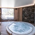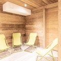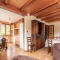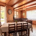 Inside, the apartment is thoughtfully designed to ensure a cozy and relaxing stay. The well-equipped kitchen invites you to prepare hearty meals after an active day, while the inviting living space provides the ideal setting to unwind. The highlight of the chalet is its wellness area, featuring a sauna and an infinity spa, where you can rejuvenate and soak in the peaceful mountain atmosphere. With bed linens provided and private outdoor parking available, every detail has been considered to make your stay seamless.