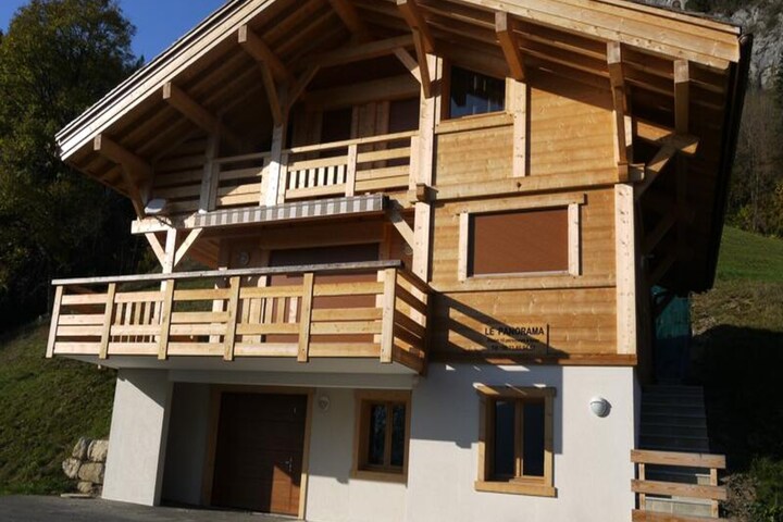Perched on a serene hillside overlooking the picturesque Aravis mountain range, Le Chalet Panorama offers a tranquil retreat for up to 10 guests. This spacious 152m² detached chalet invites you to immerse yourself in the beauty of the French Alps, with its south-facing terrace providing breathtaking views of the surrounding peaks and the charming village below. Whether you're seeking a peaceful escape or an adventure-filled holiday, this chalet is the perfect base. \n\nInside, you'll find a warm and inviting space thoughtfully designed for comfort and convenience. The chalet features a fully equipped kitchen, cozy living areas, and ample sleeping arrangements to accommodate families or groups of friends. Beds are made upon arrival, and kitchen and bath linens are provided, ensuring a hassle-free stay. With a garage, outdoor parking, and pet-friendly policies, every detail has been considered to make your visit as seamless as possible. \n\nLocated just 2000 meters from the center of Grand-Bornand Village, the chalet is perfectly positioned for exploring the region. The downhill ski slopes are only 2800 meters away, while cross-country ski trails can be found 2400 meters from your door. A free shuttle stop is conveniently located just 200 meters away, making it easy to access all the area has to offer. In summer, hiking and cycling trails abound, offering endless opportunities to connect with nature. \n\nWhether you're savoring the alpine views from the terrace, exploring the nearby slopes, or enjoying the vibrant charm of Grand-Bornand, Le Chalet Panorama promises an unforgettable mountain getaway. Let the beauty of the Alps inspire your next adventure.