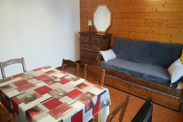In the picturesque village of Grand-Bornand, this charming 37 m² apartment offers a cozy retreat for up to four guests. Situated on the second floor of a traditional chalet, it boasts a south-facing balcony with breathtaking views of the surrounding mountains, inviting you to relax and soak in the alpine atmosphere. Whether you're planning a winter getaway or a summer escape, this property provides the perfect base to explore the beauty of the French Alps. \n\nInside, the apartment is thoughtfully designed to maximize comfort and convenience. The bright living area opens onto the balcony, creating a seamless connection between indoor and outdoor spaces. A well-equipped kitchen allows you to prepare meals with ease, while the cozy sleeping arrangements ensure restful nights after a day of adventure. The property also includes access to an outdoor parking lot, making it easy to come and go as you please. Please note that pets are not allowed, and cleaning services, as well as bed linen rentals, can be arranged in advance for added convenience. \n\nThe location is ideal for exploring the region. The center of Grand-Bornand Village is just 550 meters away, offering charming shops, restaurants, and local amenities. For winter sports enthusiasts, the downhill ski slopes are only 1.2 km away, while cross-country trails can be found 750 meters from your doorstep. A free shuttle stop is conveniently located just 10 meters from the property, providing easy access to the surrounding area. Additionally, the bus station is a short 400-meter walk, making this apartment an excellent choice for travelers seeking both tranquility and accessibility. \n\nWhether you're here to carve through pristine snow, hike scenic trails, or simply unwind in a serene alpine setting, this delightful apartment in Grand-Bornand promises an unforgettable stay in the heart of the French Alps.