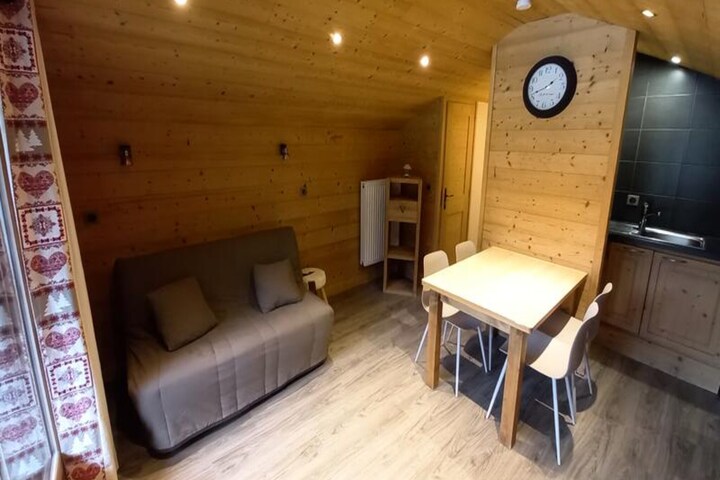 At the edge of a serene alpine meadow, this charming apartment offers an idyllic escape for travelers seeking both tranquility and adventure. Situated in the picturesque Grand-Bornand Village, the property is perfectly positioned to immerse you in the beauty of the French Alps, with breathtaking views and easy access to outdoor activities. Whether you're visiting in winter for the pristine ski slopes or in summer for lush hiking trails, this cozy retreat promises unforgettable memories. \n\nThe apartment spans 26m² and comfortably accommodates up to four guests, making it ideal for couples or small families. Located on the second floor, it features a south-facing balcony where you can soak in the sunshine and admire the surrounding mountain scenery. The property is thoughtfully equipped with all essentials, including a private outdoor parking space, bed linen, and optional towel rentals. Pets are welcome, ensuring that no member of the family is left behind. Cleaning is required, ensuring a fresh and welcoming environment for your stay. \n\nConveniently located just 600 meters from downhill and cross-country ski trails, and only 50 meters from a free shuttle stop, the apartment allows you to explore the region with ease. The vibrant center of Grand-Bornand Village is just 1.1 km away, offering charming shops, restaurants, and local attractions. In summer, the area transforms into a haven for hikers and cyclists, with trails weaving through stunning alpine landscapes. \n\nWhether you're seeking thrilling outdoor adventures or peaceful moments surrounded by nature, this apartment is your gateway to the wonders of the French Alps. Let the crisp mountain air and majestic views rejuvenate your spirit during an unforgettable holiday.