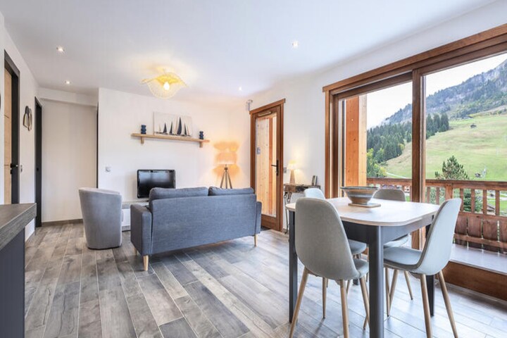 In the picturesque village of Le Grand-Bornand, this charming 63m² apartment offers a serene mountain retreat for up to four guests. With its south-facing balcony and terrace, you’ll wake up to breathtaking views of the surrounding peaks and enjoy the crisp alpine air throughout your stay. Whether you’re seeking adventure or relaxation, this property provides the perfect balance of comfort and convenience. \n\nInside, the apartment is thoughtfully designed to ensure a cozy and welcoming atmosphere. The bright living area invites you to unwind after a day of exploring, while the fully equipped kitchen allows you to prepare delicious meals with ease. The property includes outdoor parking, a garage, and all essential linens, ensuring a hassle-free experience. Please note that pets are not allowed, and cleaning is included, excluding the kitchen, dishes, and trash removal. \n\nLocated just 600 meters from the center of Chinaillon and the downhill ski slopes, the apartment provides easy access to the best of Le Grand-Bornand. A free shuttle stop is conveniently located only 50 meters away, making it simple to explore the area without a car. In winter, enjoy skiing and snowboarding on pristine slopes, while summer offers hiking trails, cycling routes, and stunning natural landscapes. \n\nWhether you’re here to carve through fresh powder or bask in the beauty of the French Alps, this apartment is your gateway to unforgettable mountain experiences. Book your stay and create lasting memories in this idyllic alpine haven.