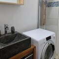 The open kitchen is fully equipped for cooking and is integrated into the living room, creating an open and social atmosphere. The apartment is also equipped with heating, ensuring comfort during cooler months. The washing machine adds convenience, especially for longer stays. With its prime location and functional amenities, this property is a great choice for those seeking a relaxing getaway in the heart of the French Alps.