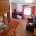 Property, along with its spacious and well-appointed design, comfortably accommodates up to 6 guests. It features a living room with a non-convertible sofa and a south-facing balcony offering stunning views of the Aravis mountain range and the village. Sleeping arrangements include a bedroom with a double bed, a second bedroom with two single bunk beds and an additional 140 cm BZ bed. The apartment also has a bathroom with a washing machine, a separate toilet, and is ideal for a family or a small group. Please note, sheets and towels are not provided, and the property is non-pet friendly.