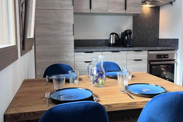 The 30m² studio comfortably accommodates up to four guests, making it a wonderful choice for couples, small families, or close friends. Thoughtfully designed, the apartment features a well-equipped living space and sleeping arrangements that ensure both comfort and practicality. Beds are made upon arrival, allowing you to settle in effortlessly, while the option to rent towels adds flexibility to your stay. A private outdoor parking space and easy access to a free shuttle service just 50 meters away make exploring the area seamless and stress-free.
