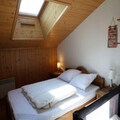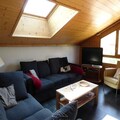 The apartment boasts a thoughtfully designed layout, combining comfort and functionality. The open-plan kitchen and living area, complete with a cozy sofa bed, is perfect for gathering after a day of exploration. The first bedroom features a plush double bed, an en-suite shower room, WC, and a private TV, while the second bedroom offers another double bed. The third bedroom includes charming bunk beds, and the mezzanine provides an additional double bed, creating a warm and flexible sleeping arrangement. Two balconies, one south-facing with stunning views of the village and Danay mountain, and another north-facing accessible from the bedrooms, allow you to soak in the alpine atmosphere. Modern conveniences like a decorative fireplace and a 3-star rating for 6 people ensure a comfortable stay.