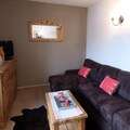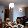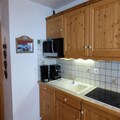 The apartment features a well-equipped open kitchen, a cozy living room with a convertible sofa, a bedroom with a double bed, and a mountain corner with bunk beds. It also includes a bathroom with a bathtub, separate WC, and a balcony with a south-facing view of the slopes, making it a relaxing spot to unwind after a day of adventure. Please note that sheets, towels, and tourist taxes are not included.