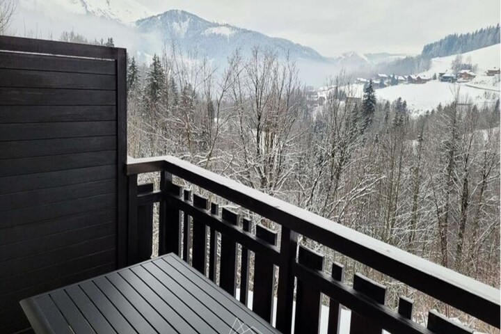 In the serene embrace of the French Alps, this charming studio apartment in the Crêt des Roches residence invites you to experience a tranquil mountain retreat. With its southwest-facing balcony offering picturesque views of the surrounding peaks, this recently renovated space is a haven for those seeking both comfort and quiet. Located just 1300 meters from local shops and 1100 meters from the ski lifts, the property is perfectly positioned for a peaceful yet convenient alpine escape. A shuttle stop just 80 meters away ensures easy access to all the region has to offer.