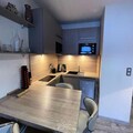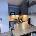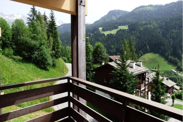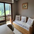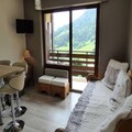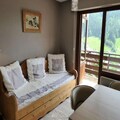 This beautifully renovated 20 m² studio is ideal for up to 4 people and is located in the Nant Robert area, just 5 minutes by car from the center of the village and shops. The apartment offers a south-west facing balcony with stunning views of the village and the surrounding Aravis mountain range. Inside, the studio features a double bed (140 cm) in the sleeping area, a living room with a 2x80 pull-out sofa, and a shower room with a WC.