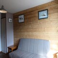 This pleasant 23m² studio + cabin is designed for 4 people and is located on the 2nd floor, offering a clear view of the Grand-Bornand and Aravis mountain range. The accommodation includes an entrance with 2 bunk beds, a living room with a sofa bed, and a bathroom with a bathtub. The unit also features a south-facing balcony, ideal for enjoying the stunning scenery. The residence is accessible via an external staircase (15 steps). Please note, sheets and towels are not provided, and a tourist tax is applicable for adults.