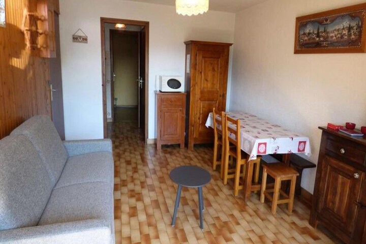 Property, along with its cozy and functional design, accommodates up to 4 guests in a 31.5m² studio-cabin combination. The living room is furnished with a rapido sofa that converts to a bed, ideal for a restful night's sleep. The cabin includes two sets of bunk beds, each measuring 80 cm, making it perfect for families or small groups. The apartment also offers a balcony with a west-facing exposure, allowing guests to enjoy the surrounding views. Please note that sheets and towels are not provided, and pets are not allowed. Guests can also expect to pay the tourist tax on-site, and additional services, such as rental of bedding, can be arranged through the agency.