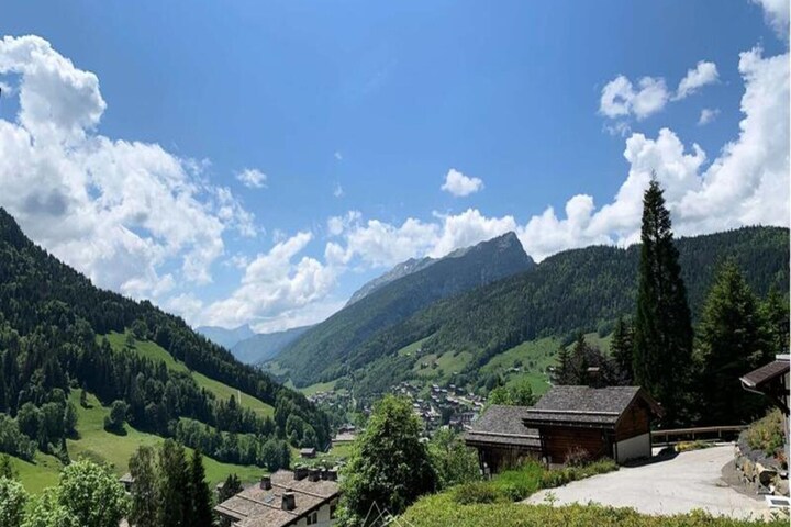 This nice residence, located in the peaceful Nant Robert area, offers a relaxing retreat just 5 minutes by car from the village center and shops. The apartment provides stunning views of the village and surrounding mountains from its balcony. Inside, the apartment features an open kitchen leading to the living room, where you'll find a comfortable sofa bed (140 cm). The bedroom is equipped with a double bed (140 cm), and there is an additional sleeping area with a single bed (90 cm), making it ideal for up to 4 people. A shower room with WC completes the accommodation.