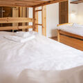 "Galaxie 218", 2-room apartment 35 m2 on 2nd floor. Fully renovated in 2018, beautiful furnishings: living/dining room with 1 double sofabed (140 cm, length 200 cm), cable TV and DVD. 1 room with 1 x 2 bunk beds. Kitchenette (oven, dishwasher, 2 ceramic glass hob hotplates, toaster, kettle, raclette grill, fondue Set (cheese)). Bath/WC. Small balcony 8 m2, north facing position. Balcony furniture. View of the countryside. Facilities: hair dryer. Please note: non-smokers only.