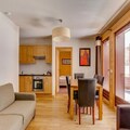 The apartments at Les Portes du Mont Blanc**** are thoughtfully designed to combine modern luxury with cozy comfort. Each unit features a fully equipped kitchen, a stylish living room with a sofa bed, and two bedrooms that can be arranged with either double or single beds. The private balcony invites you to savor your morning coffee while soaking in the stunning mountain vistas. Guests can also enjoy complimentary Wi-Fi, flat-screen TVs, and access to premium amenities including a heated indoor pool, a fitness center, and a wellness area complete with a sauna, jacuzzi, and steam room.