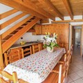 Living room(double sofa bed, TV(satellite), fireplace), open kitchen(oven, dishwasher, fridge-freezer), bedroom(single bed, double bed), bedroom(single bed, double bed), bedroom(single bed, double bed), bedroom(3x single bed), bathroom(shower, washbasin, toilet, bidet, washing machine), bathroom(shower, washbasin, toilet, bidet), bathroom(shower, washbasin, toilet, bidet), ski storage, garage, balcony or terrace, heating(central), high chair