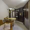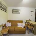 On the 5th floor: open kitchen(cooker(induction), fridge), Living/bed room(double sofa bed, TV(satellite)), bedroom(single bed, double bed or 2 single beds), bathroom(bathtub with shower, washbasin, toilet, bidet), ski storage, lift