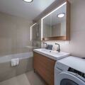 Bathroom 1: Bathtub, Double hand basin, and Washing machine