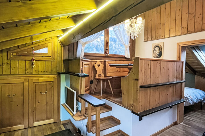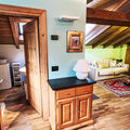 "Mansarda San Lorenzo", 2-room apartment 50 m2 on 3rd floor. With sloping ceilings, practical and cosy furnishings: living/dining room with 1 double sofabed, dining table and TV. 1 double bedroom with 1 double bed (160 cm, length 190 cm). Kitchen (oven, dishwasher, 4 induction hot plates, kettle, freezer, electric coffee machine). Shower/bidet/WC. Heating. Heating available only from 01.11. to 30.04. Wooden floors. View of the resort. Facilities: washing machine, baby cot for up to 2 year olds (extra), hair dryer. Internet (WiFi, free). Parking (fenced 1 car) at the house. Please note: non-smokers only. Fire extinguisher. IT022143C2V73LFGF6