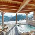 The chalet offers five beautifully appointed bedrooms, each with a double bed, as well as a mezzanine with two single beds for added flexibility. A studio on the ground floor includes a double sofa bed, kitchenette, and a private bathroom with a sauna shower cubicle and access to the outdoor jacuzzi. The chalet also features four additional bathrooms, all with shower cubicles, washbasins, and WC. Outside, enjoy a terrace, balcony, and garden with stunning views of the valley, perfect for relaxing after a day of adventure.