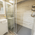 Bathroom 2: Shower, Towel dryer, and Single hand basin