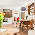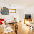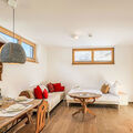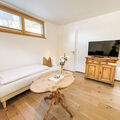 "Pantera", 2-room apartment 53 m2, on the lower ground floor. Bright, beautiful and tasteful furnishings: large living/dining room with 1 sofabed (90 cm, length 200 cm), cable TV (flat screen). 1 large double bedroom. Open kitchen (oven, dishwasher, 4 ceramic glass hob hotplates, toaster, kettle, freezer, electric coffee machine, Capsules for coffee machine (Tschibo Cafissimo)). Shower/WC. Floor heating. Wooden floors. Comfortable furnishings in the country house style. Beautiful view of the mountains. Facilities: hair dryer. Internet (WiFi, free). Parking at the house. Please note: non-smoking house. Smoke alarm. SKI IN - SKI OUT! 50618-001333-2024